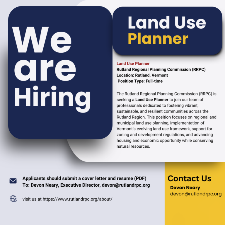 “The RRPC has been an crucial partner to Poultney during a time of significant change. In recent years, the staff at RRPC has had considerable foresight in visioning a new future for the community by identifying key needs such as increased capacity in town government, prioritizing economic development, providing expertise for town plan updates and zoning amendments, and remaining dedicated to implementing the community’s vision for its future. Thanks to all at the RRPC!”