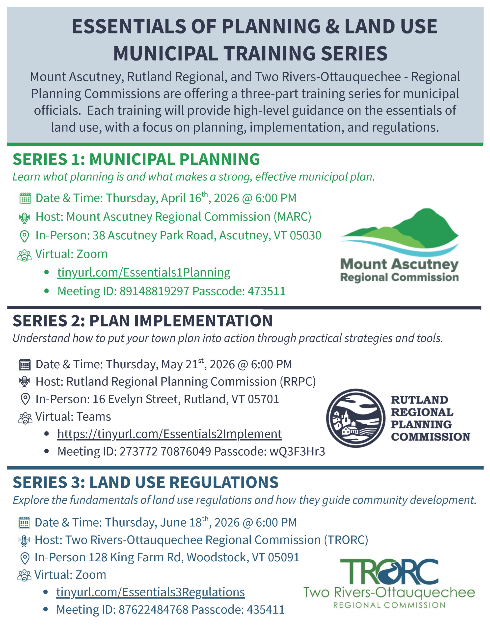 This event will also provide information on Vermont’s Flood Safety Act, which is designed to address flood risk through a watershed-wide approach. Planning for resilience now is crucial in preventing further loss of life and property in future storms. This event will help towns and community members understand what the implementation of statewide river corridor protections means for their town and provide time to answer questions related to the Act.